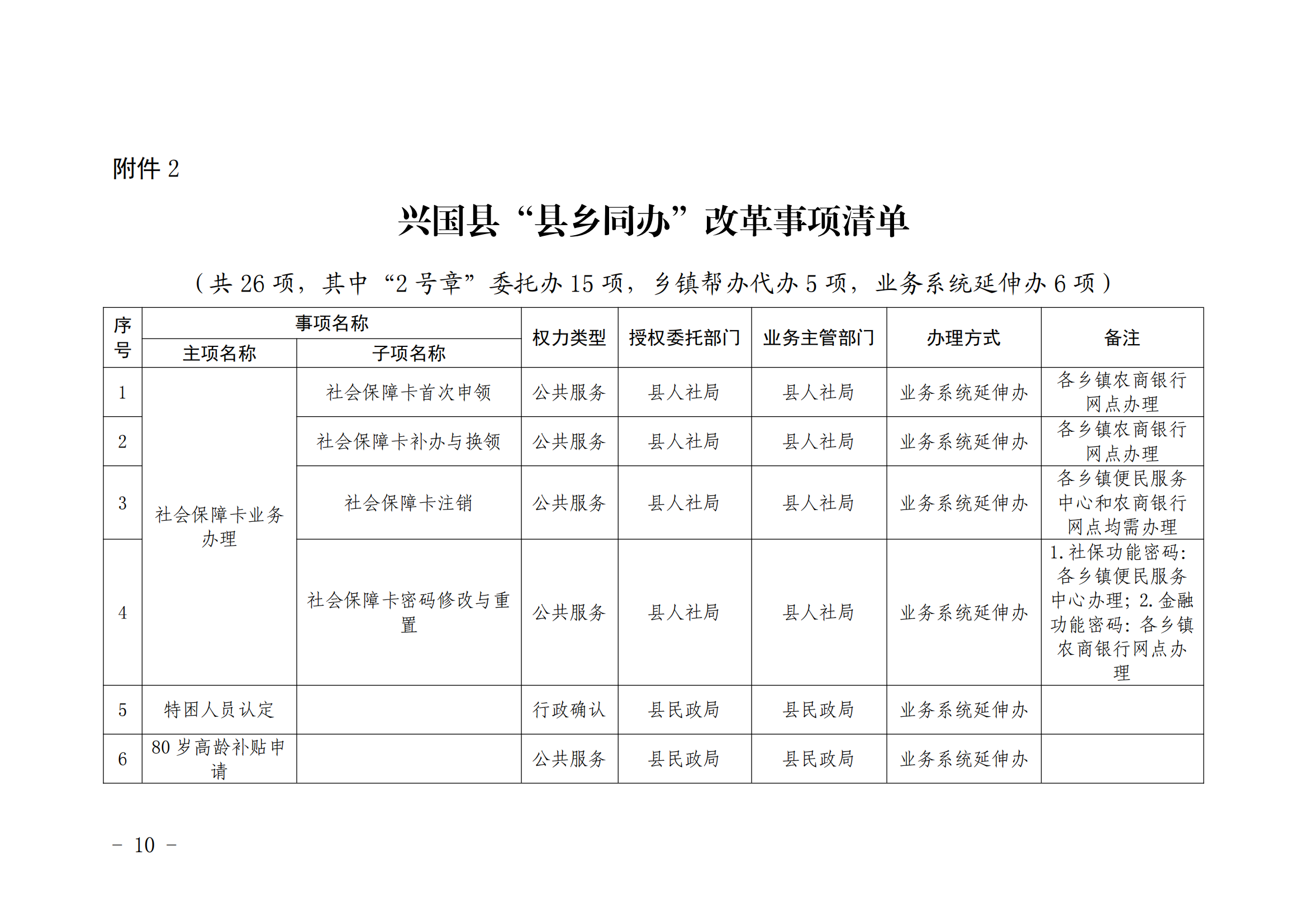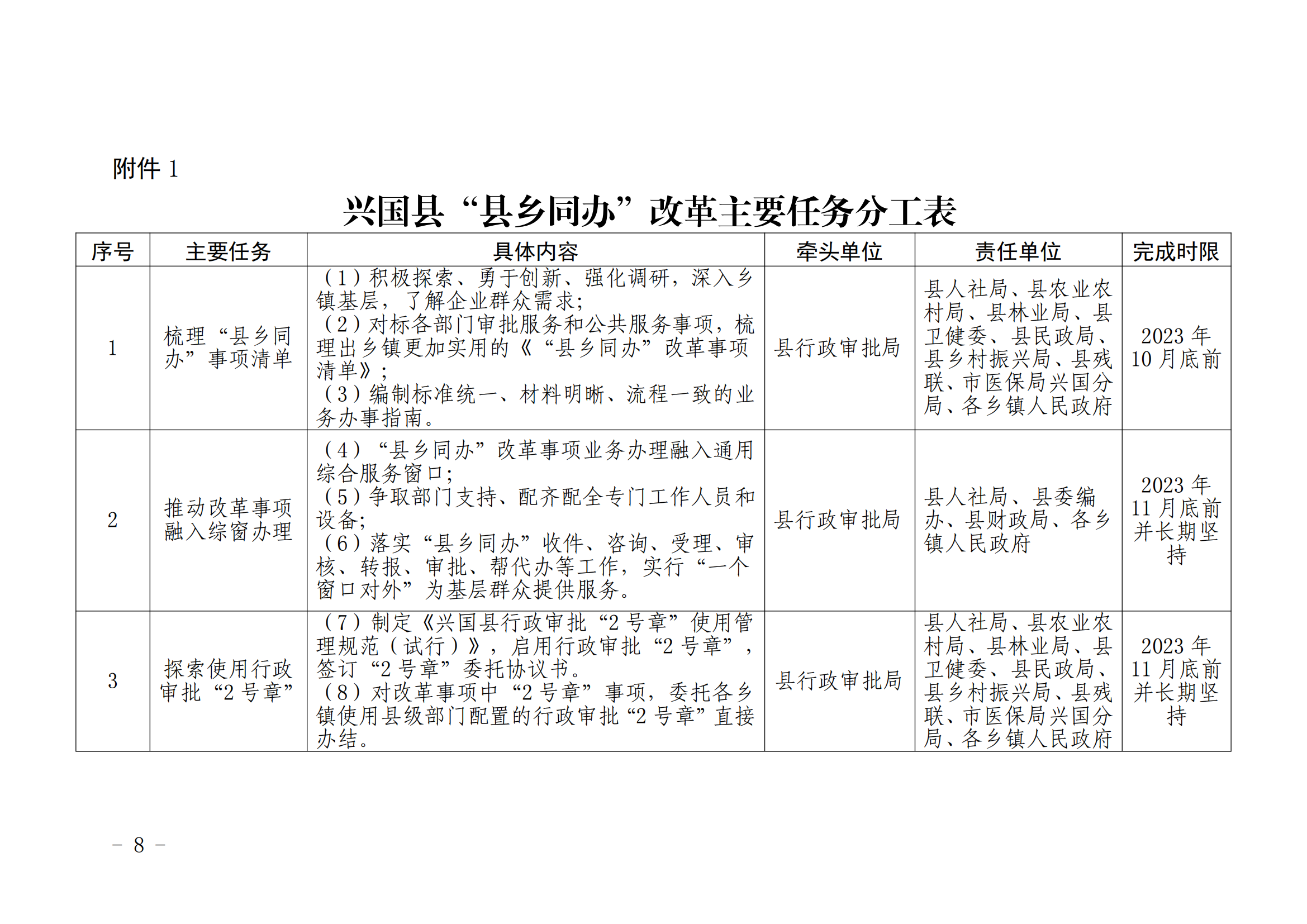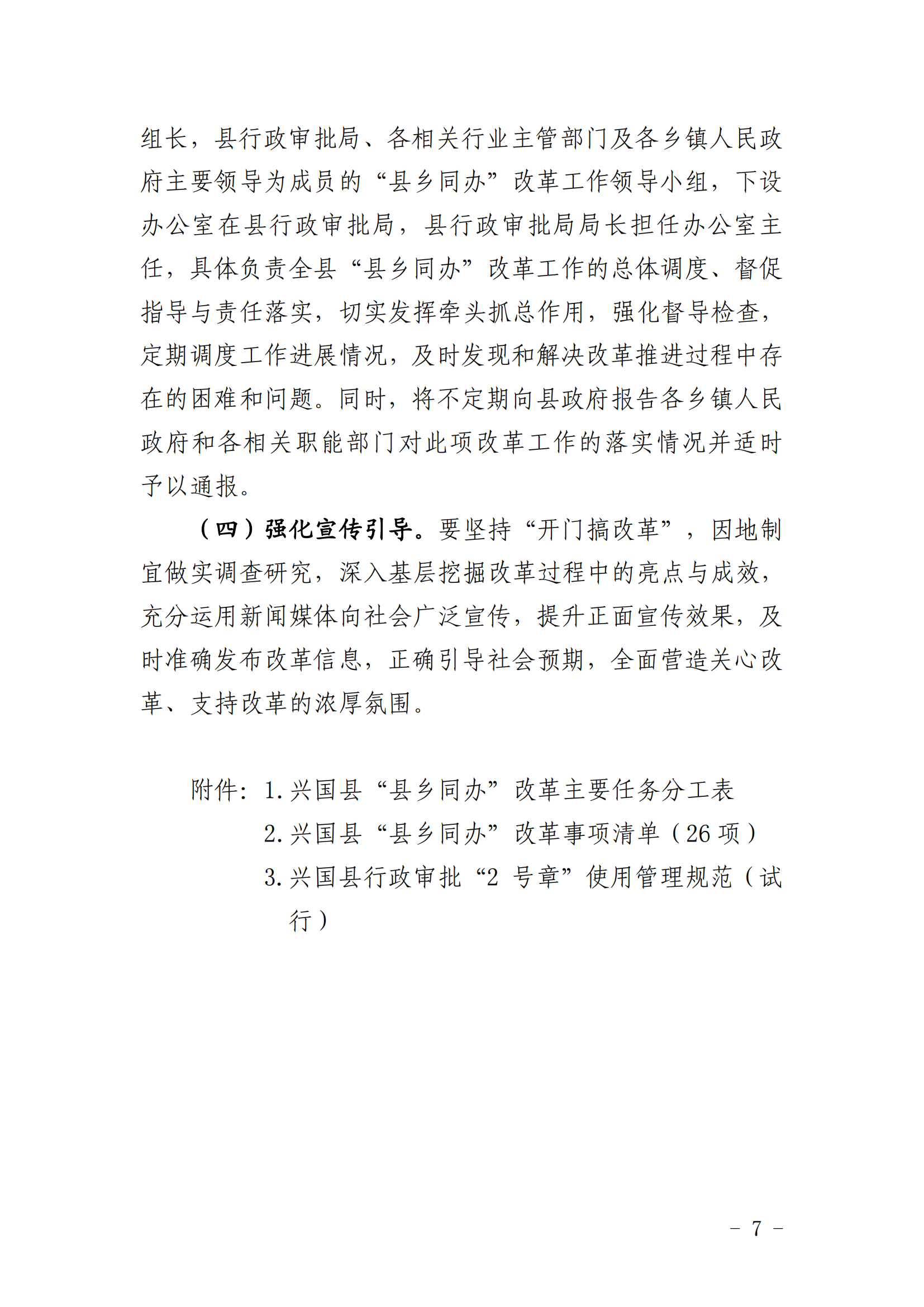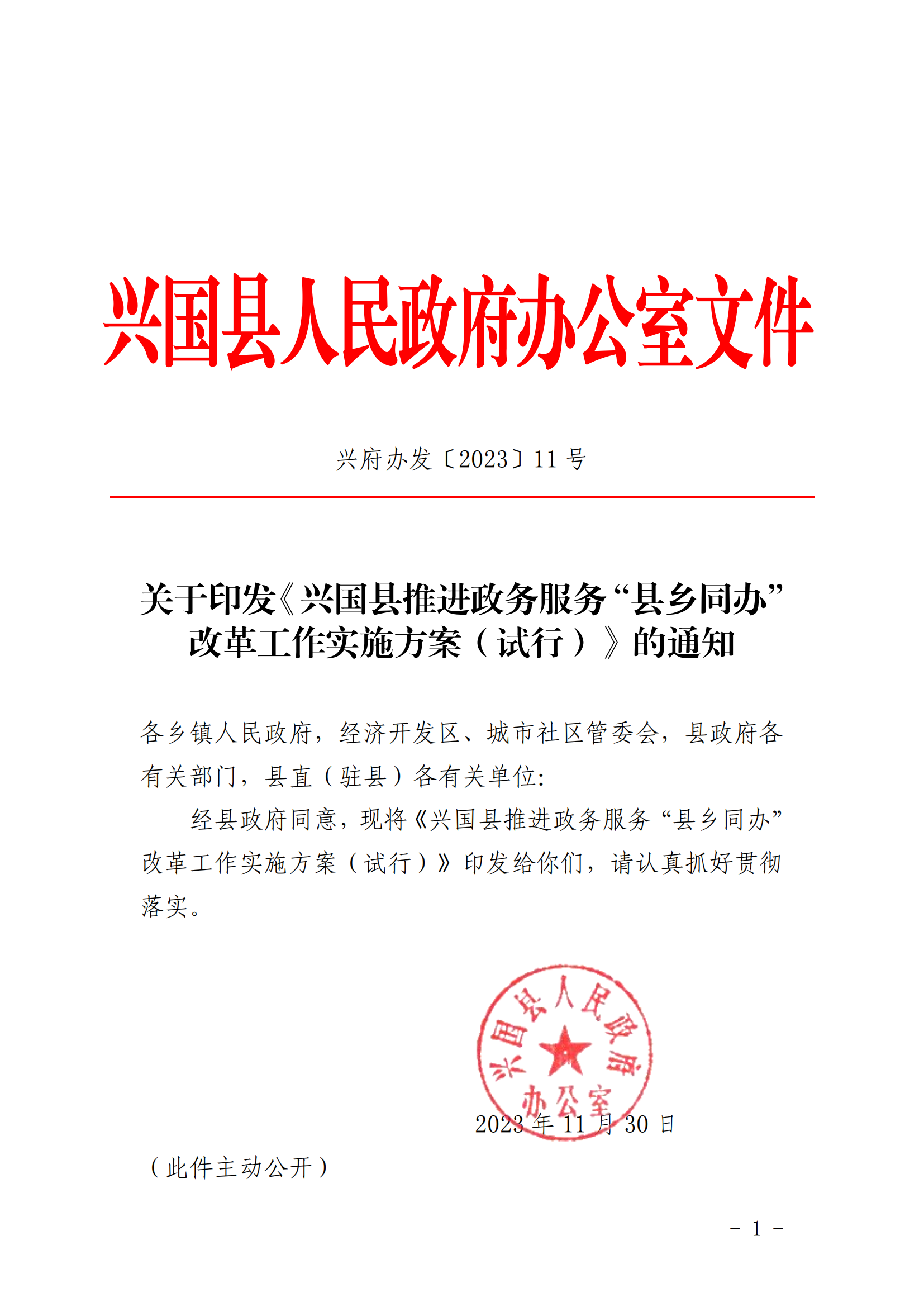 【有效】【規范性文件】關于印發《興國縣探索推進政務服務“縣鄉同辦”改革工作實施方案》的通知