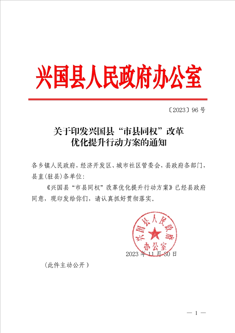 關于印發《興國縣“市縣同權”改革優化提升行動方案》的通知