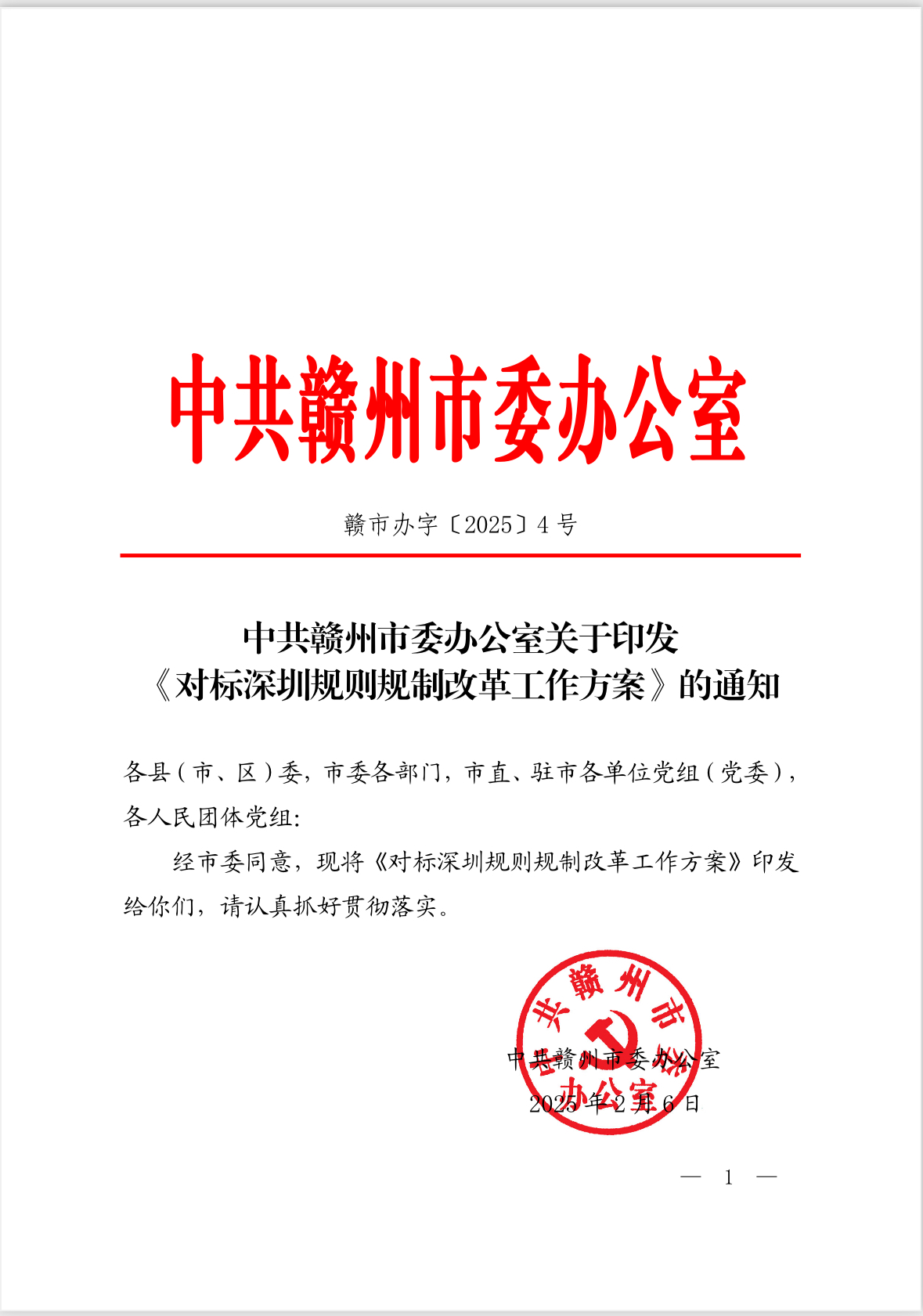 中共贛州市委辦公室關于印發《對標深圳規則規制改革工作方案》的通知