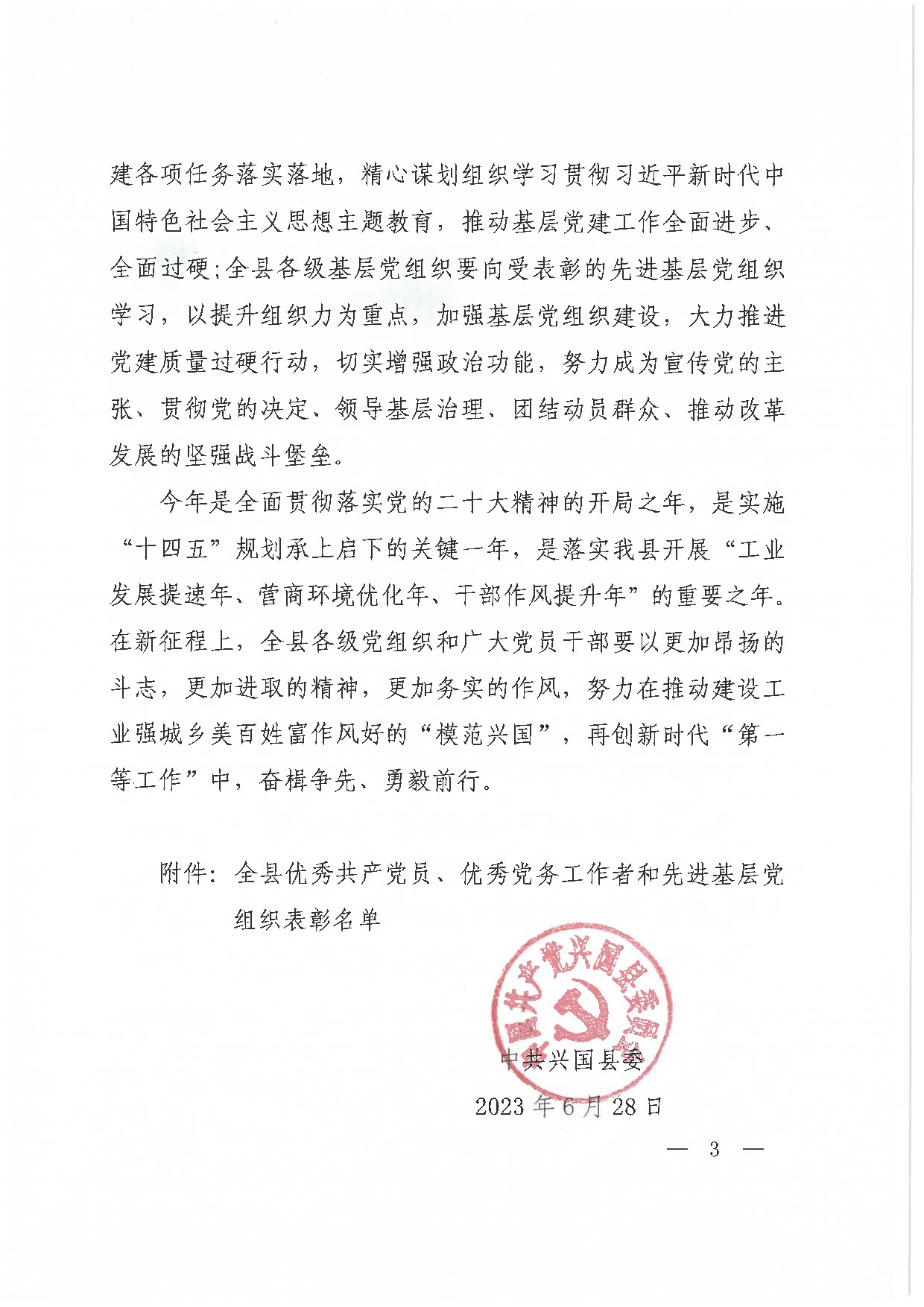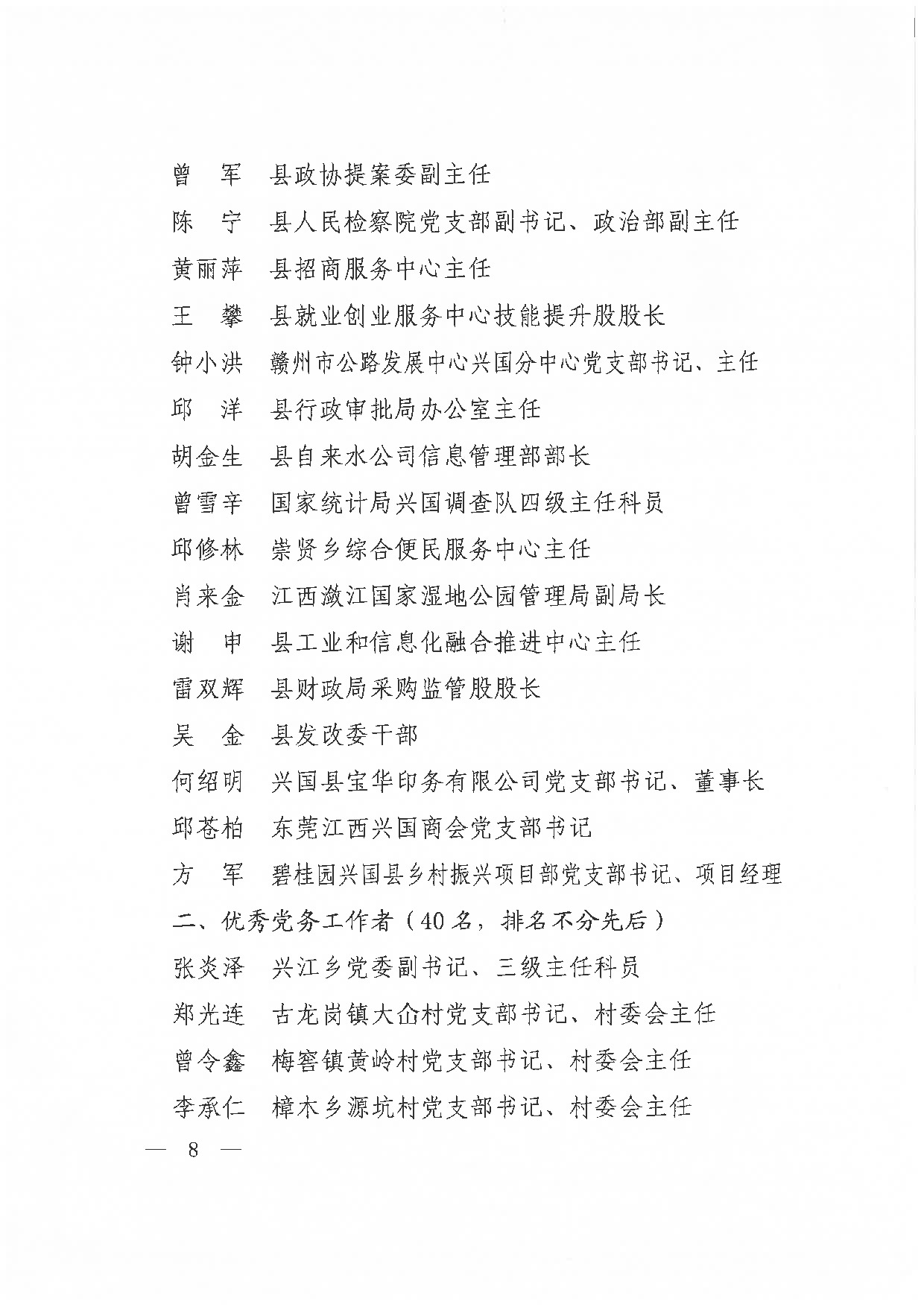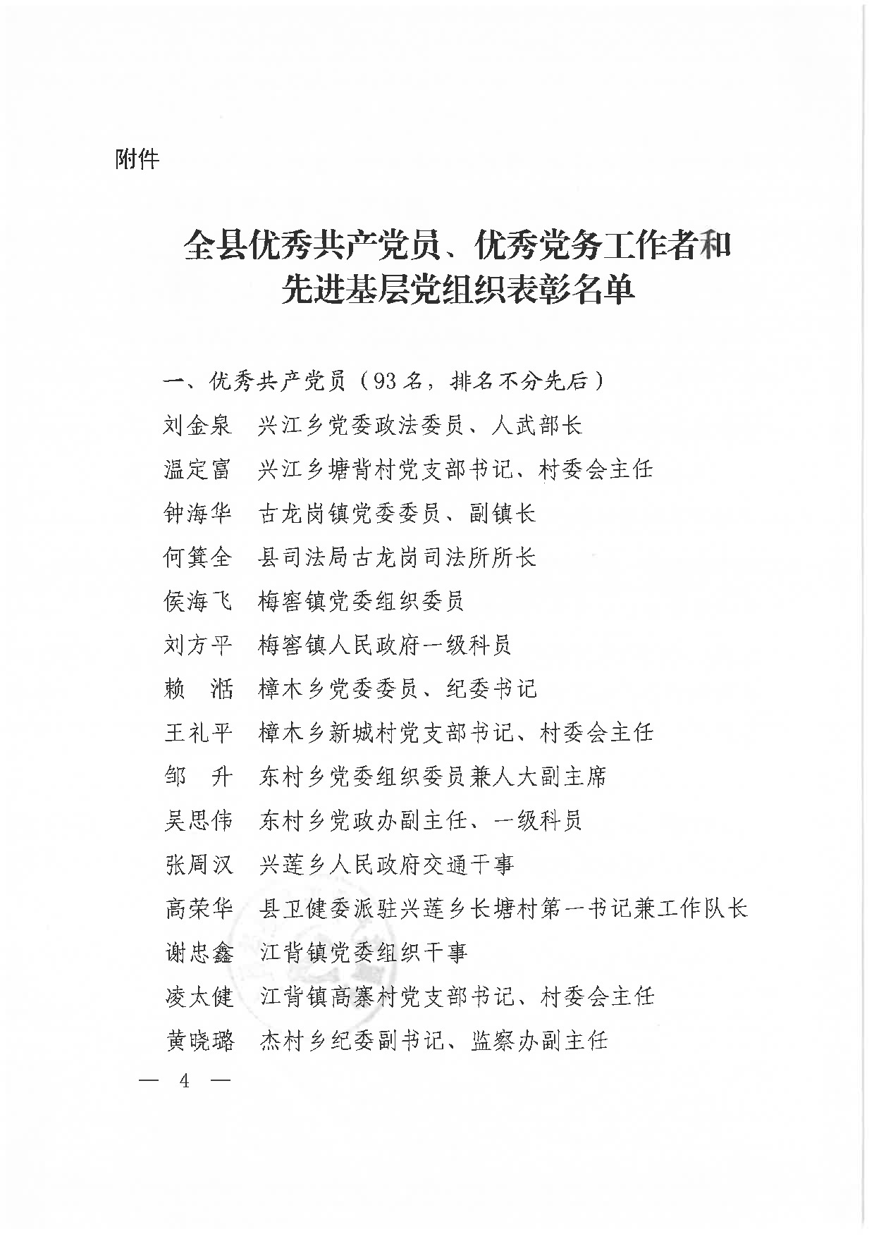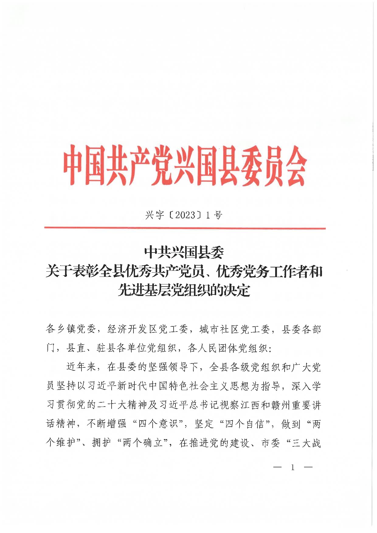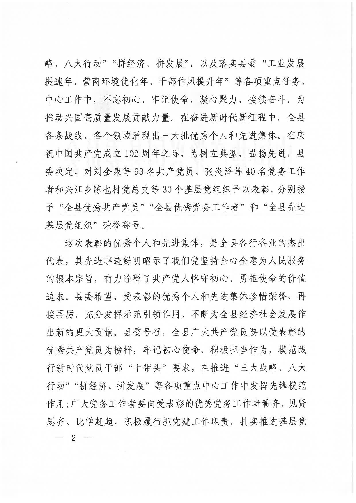 關于表彰全縣優秀共產黨員、優秀黨務工作者和先進基層黨組織的決定