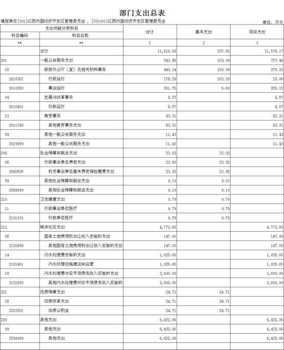 2022年經開區支出預算總額為11815.68萬元;較上年預算安排增加10358.47萬元,增加710.84%。其中: