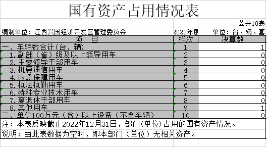 截止2022年12月31日,本部門國有資產占用情況見公開10表《國有資產占用情況表》。其中車輛中的其他用車主要是轎車,車改辦改革已上交。