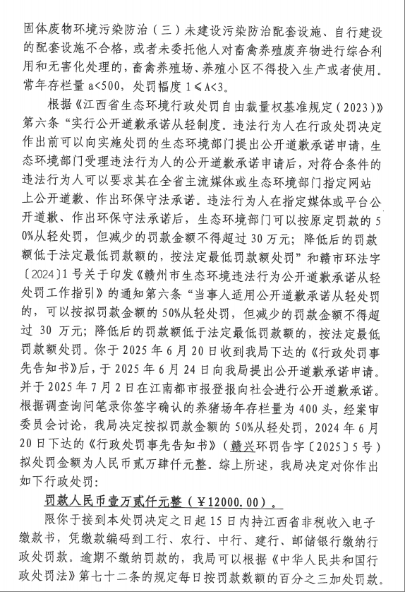 杜恭京行政處罰決定書公示(贛興環(huán)行罰〔2025〕5號(hào))