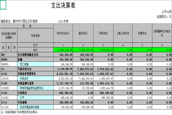 從預算單位構成看,納入本部門 2021 年部門匯總決算編制范圍的預算單位共計 3 家,具體包括:贛州市興國生態環境局本級、贛州市興國生態環境保護綜合執法大隊和贛州市興國生態環境監測站。