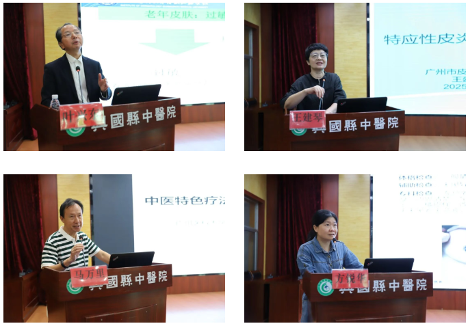 揭牌儀式后召開廣州市醫學會皮膚病學分會“皮科醫生基層行”皮膚科治療聯合培訓班。葉興東、王建琴、馬萬里、方銳華4位教授分別從《老年皮膚過敏診療中的問題及對策》《特應性皮炎進展》《中醫外治療法在皮膚科的臨床應用》《AD患者常問的3個問題》等方面進行了深入淺出的授課,為與會學員帶來了一場理論與臨床實例兼具的皮膚病學術大課堂。