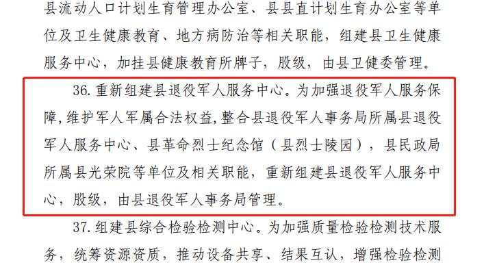 為深化事業單位改革,興國縣擬于近期整合原退役軍人服務中心、縣革命烈士紀念館和原民政局光榮院等相關單位職能,重新組建退役軍人服務中心,由縣退役軍人事務局管理。