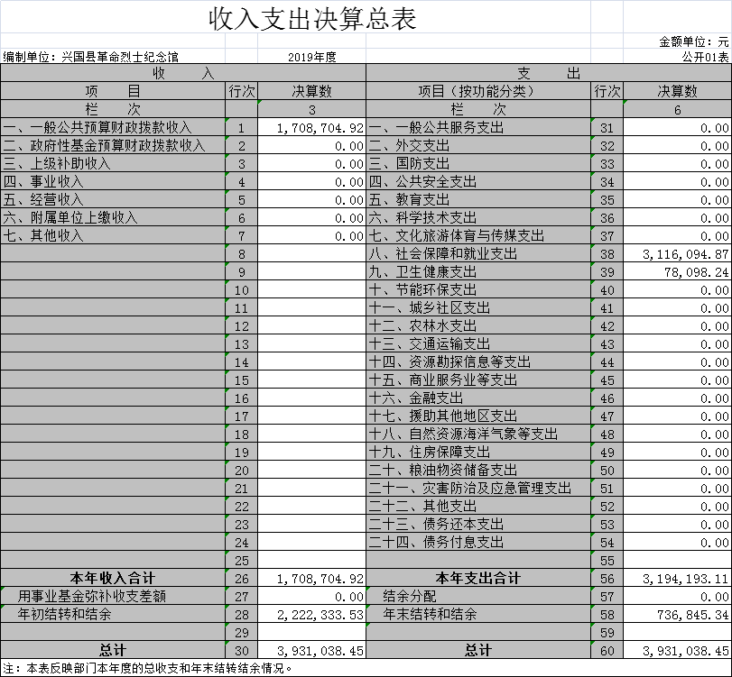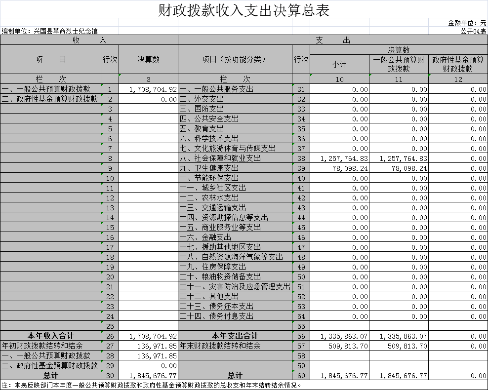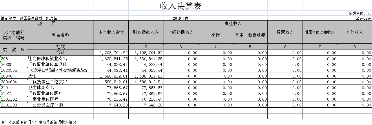 納入本套部門決算匯編范圍的單位共1個。興國縣革命烈士紀念館為興國縣退役軍人事務局下屬全額撥款事業單位。