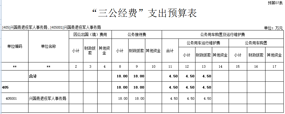 2023年興國縣退役軍人事務局“三公”經費一般公共預算安排22.5萬元。其中: