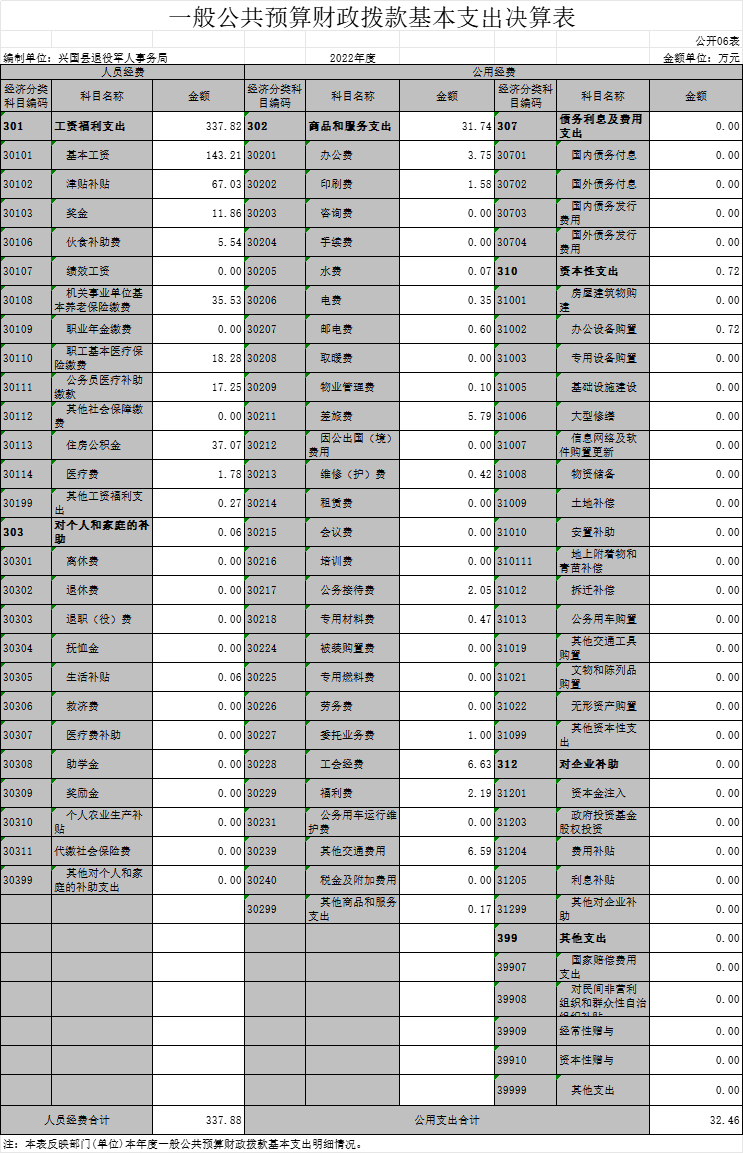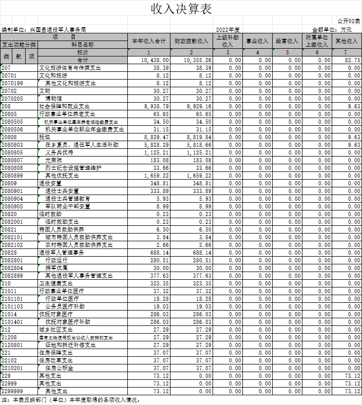 第二部分 興國縣退役軍人事務局2022年度部門決算表