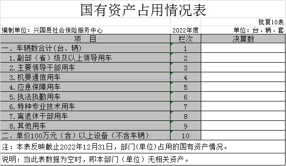 截止2022年12月31日,本單位國有資產占用情況見公開10表《國有資產占用情況表》。其中車輛中的其他用車主要是:因公車改革,本單位無公車。