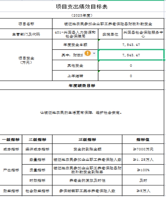 項目名稱:被征地農民參加企業(yè)職工養(yǎng)老保險縣財政補助資金