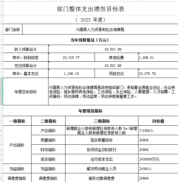 2023年人社局部門共有預算單位3個,包括:興國縣人力資源和社會保障局機關、興國縣社會保險服務中心、興國縣就業(yè)創(chuàng)業(yè)服務中心。