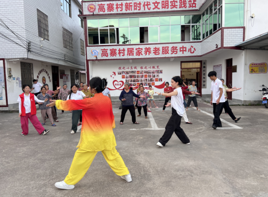 實踐隊還十分關注村里的留守兒童和孤寡老人。在與留守兒童相處時,孩子們圍坐在一起搭積木,隊員們耐心引導,實踐站里充滿歡聲笑語。在高寨村養老協會,隊員們與孤寡老人們一起打太極,休息時陪老人嘮家常,聽他們講過去的故事,溫馨而寧靜。