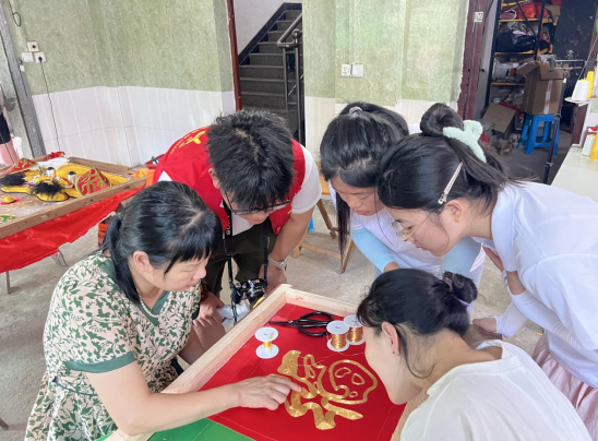 之后實踐隊又來到市級非遺客家刺繡工坊,聽傳承人講述客家刺繡的起源、傳承與發展及在客家人遷徙歷程中的故事,仔細觀摩精美刺繡作品,觀看傳承人平繡、凹凸繡等精湛技藝,通過現場體驗,更加領略非遺文化的魅力。