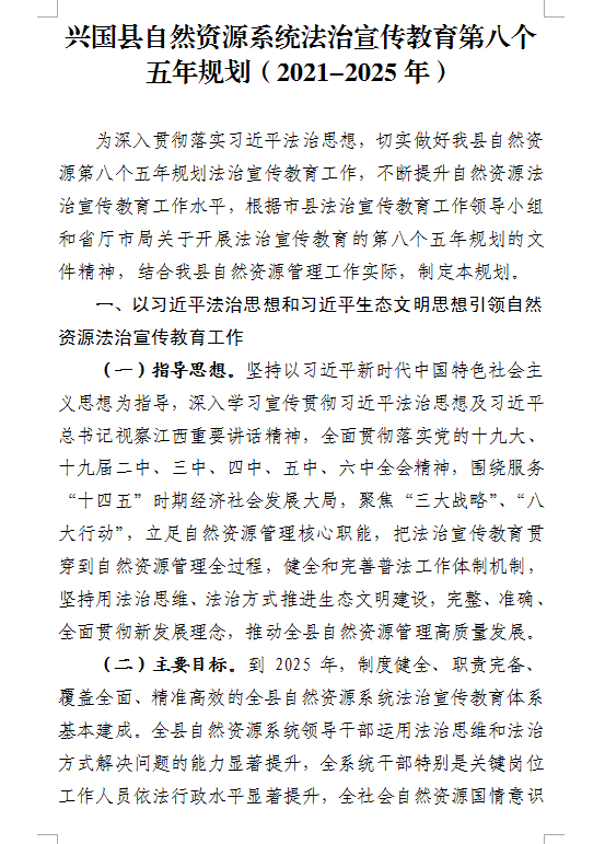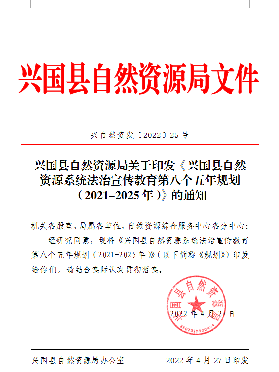 【有效】興國縣自然資源局關于印發《興國縣自然資源系統開展法治宣傳教育的第八個五年規劃(2021-2025年)》的通知