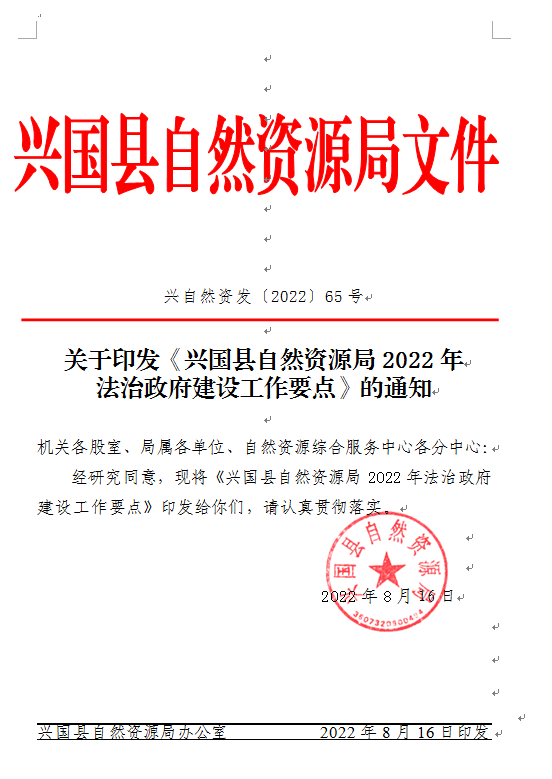 【有效】關于印發《興國縣自然資源局2022年法治政府建設工作要點》的通知