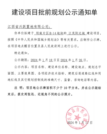 江茂·陽光城項目規劃批前公示