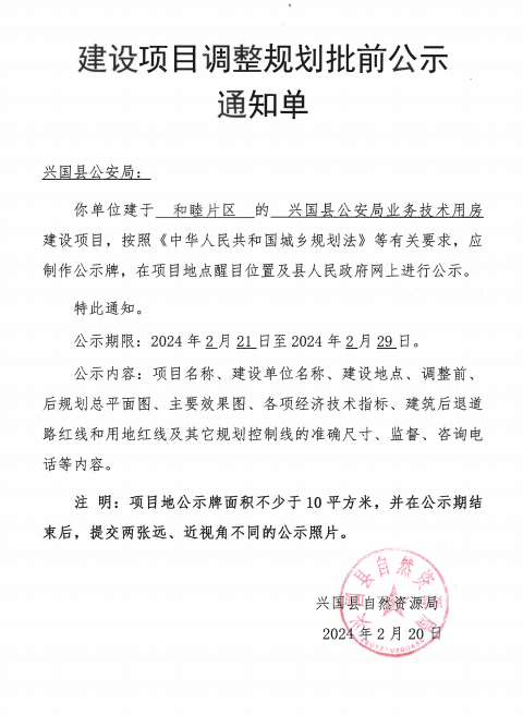興國縣公安局業(yè)務(wù)技術(shù)用房規(guī)劃建筑設(shè)計方案調(diào)整公示