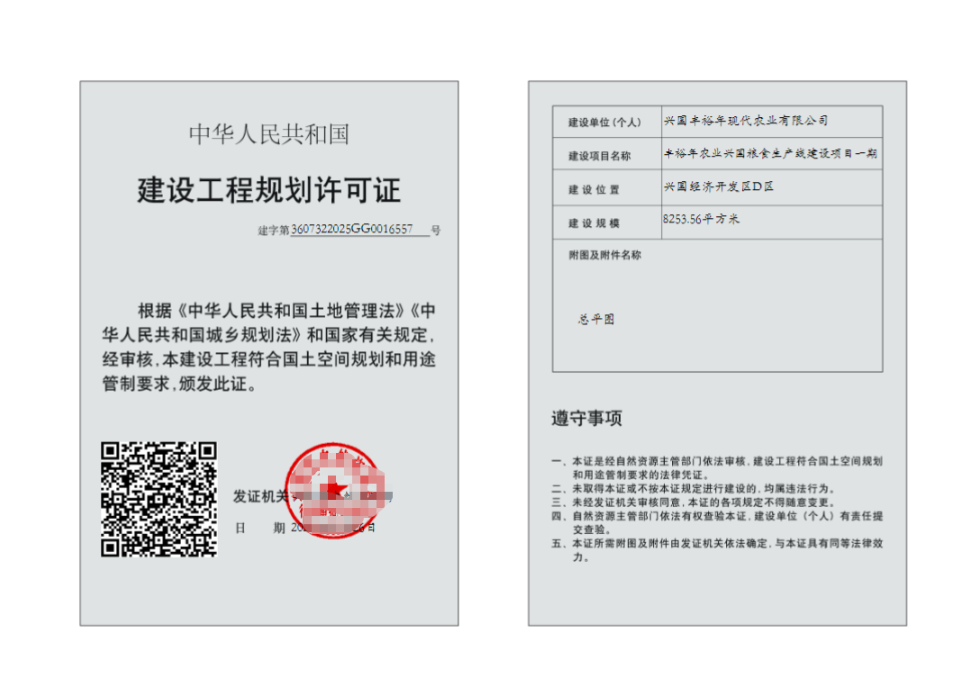 (豐裕年農業興國糧食生產線建設項目一期)建設工程規劃許可批后公布