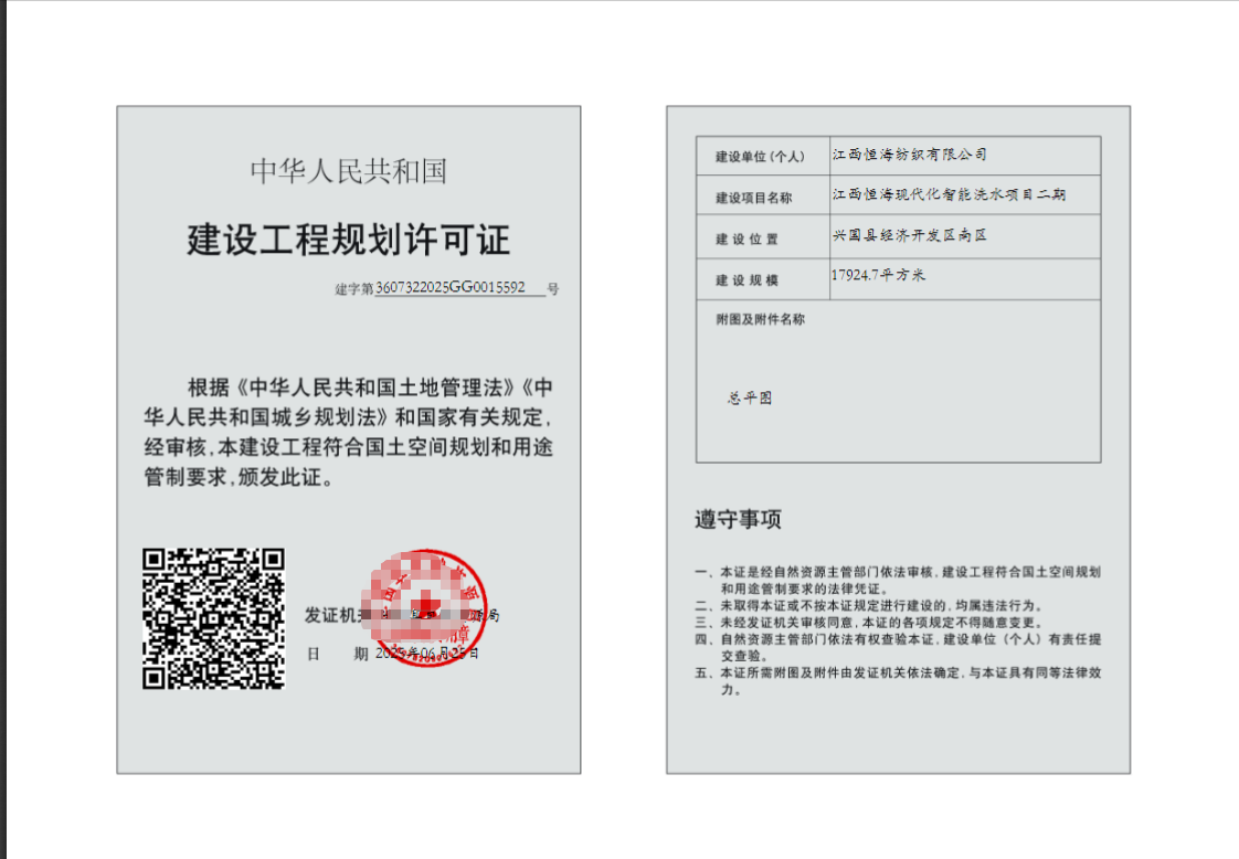 (江西恒海現(xiàn)代化智能洗水項(xiàng)目(二期))建設(shè)工程規(guī)劃許可批后公布