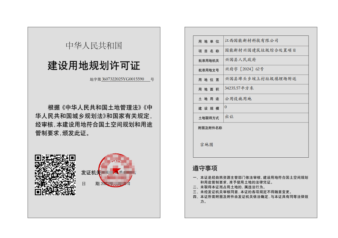 國能新材興國建筑垃圾綜合處置項(xiàng)目建設(shè)用地規(guī)劃許可批后公布