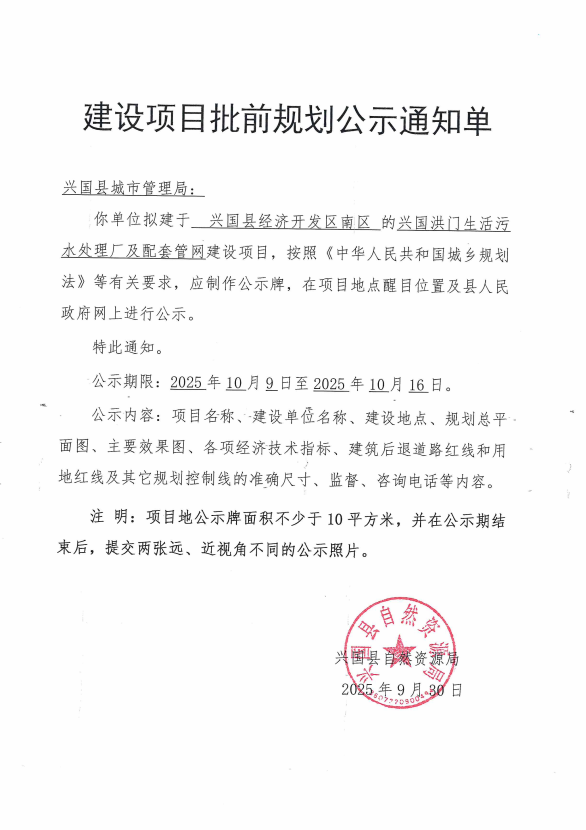 建設(shè)項(xiàng)目批前規(guī)劃公示通知單