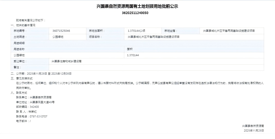 興國縣自然資源局國有土地劃撥用地批前公示