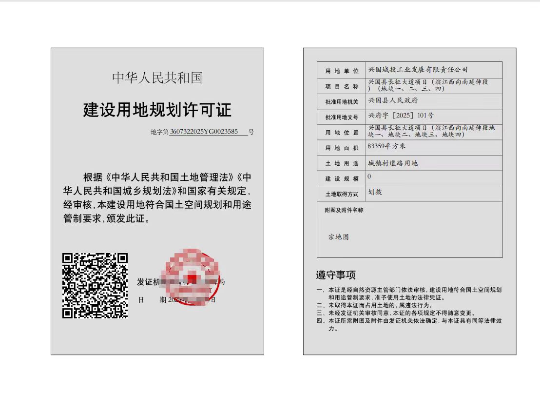 (興國縣長征大道項目(濱江西向南延伸段地塊一、二、三、四)建設用地規劃許可批后公布