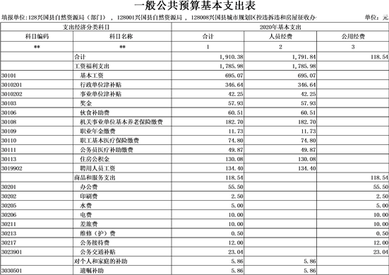 第三部分興國縣自然資源局2020年部門預算表