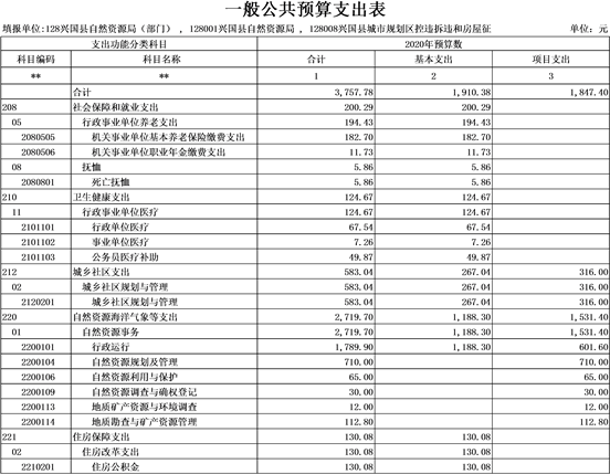 第三部分 興國縣自然資源局2020年部門預算表