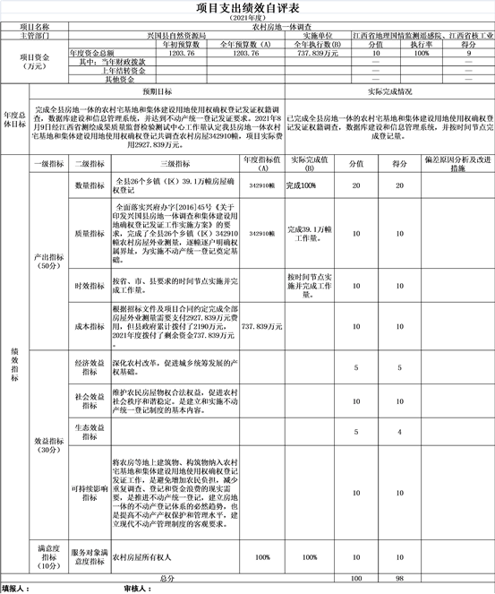 2021年部門預算績效的項目有15個,年度資金為10076.58萬元,其中:國土空間規劃年度資金為896萬元;用地報批費年度資金為100萬元;91棟歷史建筑測繪及建檔年度資金為276.4萬元;土地整理項目年度資金為218.16萬元;興國縣農村全域村規劃年度資金為428萬元;農村亂占耕地問題清查年度資金為268萬元;興國縣25個鄉鎮國土空間規劃編制年度資金為1500萬元;鄉鎮綜合執法人員經費年度資金為391.2萬元;第三次全國土地(國土)調查年度資金為257.60萬元;農村房地一體調查年度資金為1203.76萬元;旱地改水田項目年度資金為211.14萬元;土地開發項目年度資金為933.47萬元;增減掛項目年度資金為2719.43萬元;自然資源統一確權登記年度資金為473.42萬元;控違辦業務費年度資金200萬元。按照預算績效管理的統一部署和要求,進一步強化預算績效意識,成立預算績效管理工作領導小組,組織召開績效評價專題會議,大力推進預算績效目標申報、項目支出績效評價等預算管理工作,加強資金管理,健全財務監督制度。