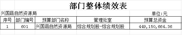 2023年興國縣自然資源局部門共有預算單位 1 個,包括:興國縣自然資源局。