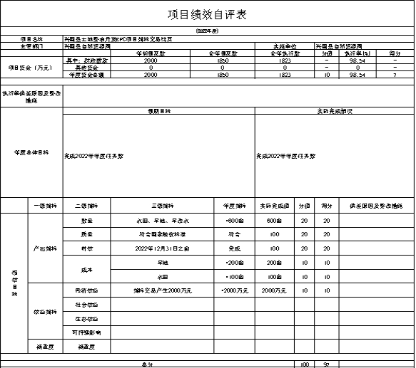 興國縣自然資源局2022年度部門績效自評(píng)總報(bào)告