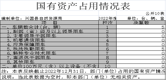 截止2022年12月31日,本部門國有資產(chǎn)占用情況見公開10表《國有資產(chǎn)占用情況表》。其中車輛中的其他用車無。