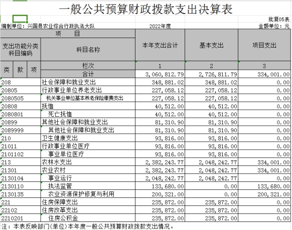 (三)對個人和家庭補助支出4.05萬元,較2021年減少51.08萬元,減少了92.65%,主要原因是:2022年績效工資在工資福利支出中的績效工資科目,2021年績效工資在對個人和家族補助支出的獎勵金科目中導致數字差額較大,4.05萬元是2022年新增1人死亡的撫恤金。