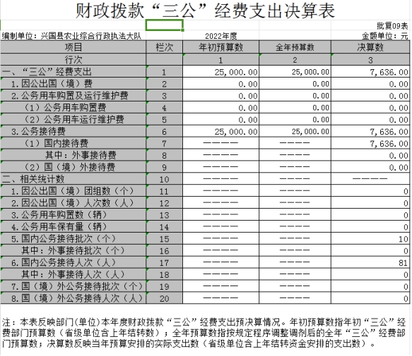 “三公”經費支出:指用財政撥款安排的因公出國(境)費、公務用車購置及運行維護費和公務接待費。其中,因公出國(境)費反映單位公務出國(境)的國際旅費、國外城市間交通費、住宿費、伙食費、培訓費、公雜費等支出;公務用車購置及運行維護費反映單位公務用車車輛購置支出(含車輛購置稅、牌照費),按規定保留的公務用車燃料費、維修費、過橋過路費、保險費、安全獎勵費用等支出;公務接待費反映單位按規定開支的各類公務接待(含外賓接待)支出。