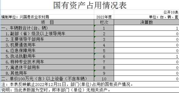 截止2022年12月31日,本單位國有資產(chǎn)占用情況見公開10表《國有資產(chǎn)占用情況表》。其中車輛中的其他用車主要是宣傳執(zhí)法用車。