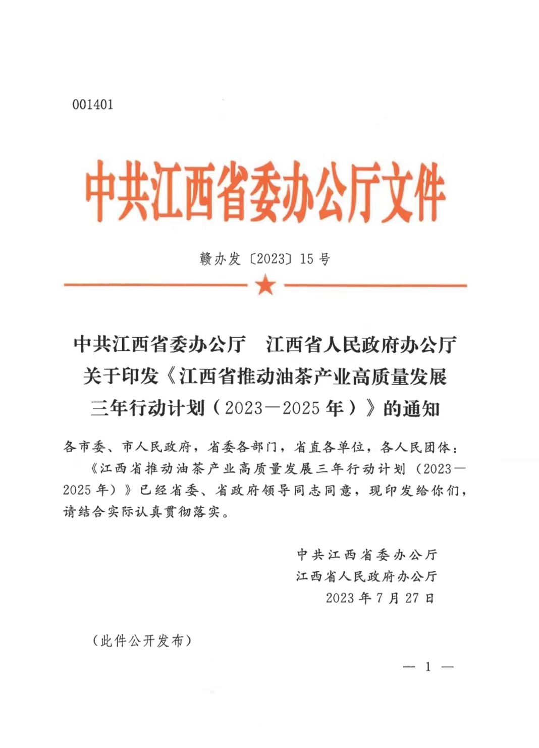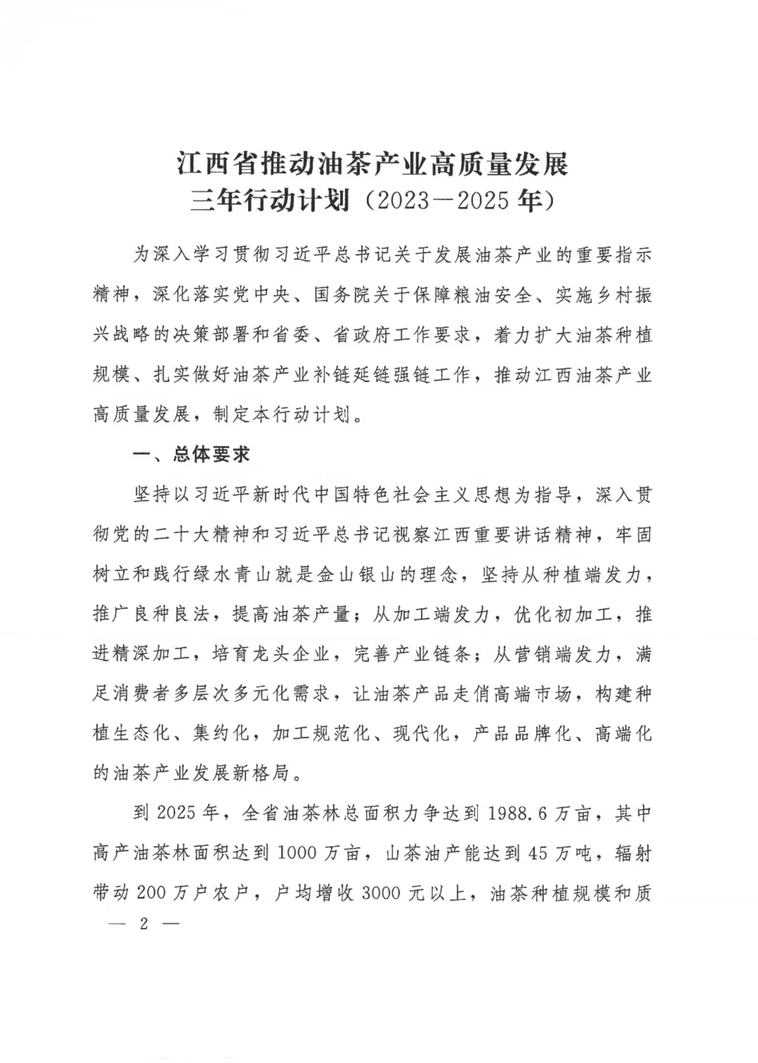 江西省人民政府辦公廳關于印發《江西省推動油茶產業高質量發展三年行動計劃(2023-2025年)》的通知