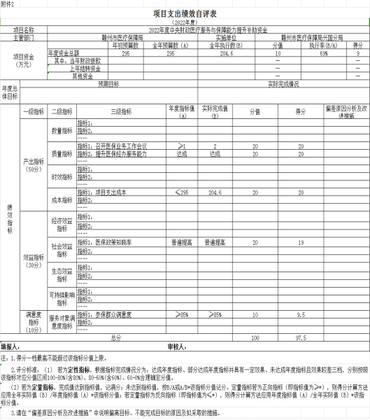 “2022年度中央財政醫療服務與保障能力提升補助資金”項目自評綜述:根據年初設定的績效目標,項目自評得分 97.5 分。項目全年預算數為 256 萬元,執行數為204.6萬元,完成預算的 69%。項目績效目標完成情況:提升了醫保信息化水平,加強網絡、信息安全、基礎設施等方面建設;加強了打擊欺詐騙保工作力度,切實保障醫保基金合理有效使用;有效提升了綜合監管、經辦服務、人才隊伍建設等醫療保障服務能力。