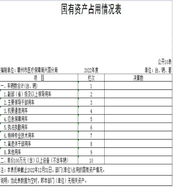 截止2022年12月31日,本單位國有資產占用情況見公開10表《國有資產占用情況表》。本單位無其他用車。