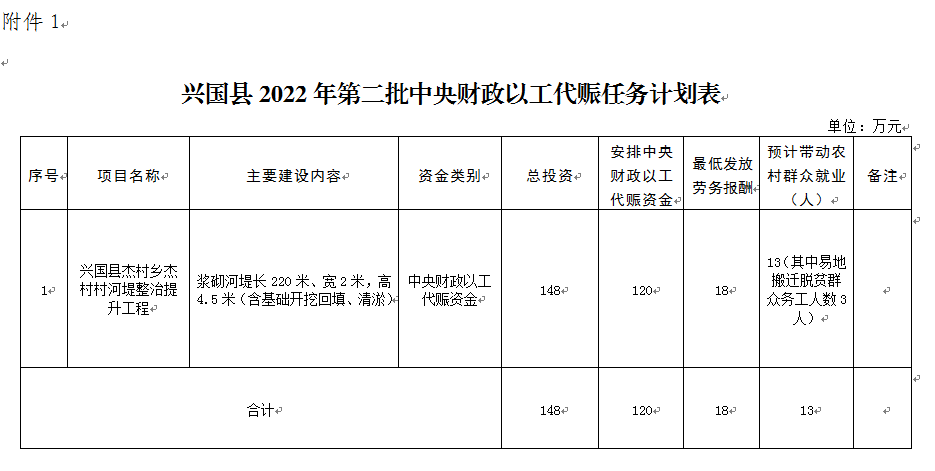 興國(guó)縣2022年第二批中央財(cái)政以工代賑任務(wù)計(jì)劃表