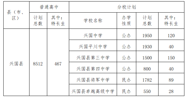 2025年我縣普通高中計劃招生8512人,其中特長生招生467人。各學校具體招生計劃如下: