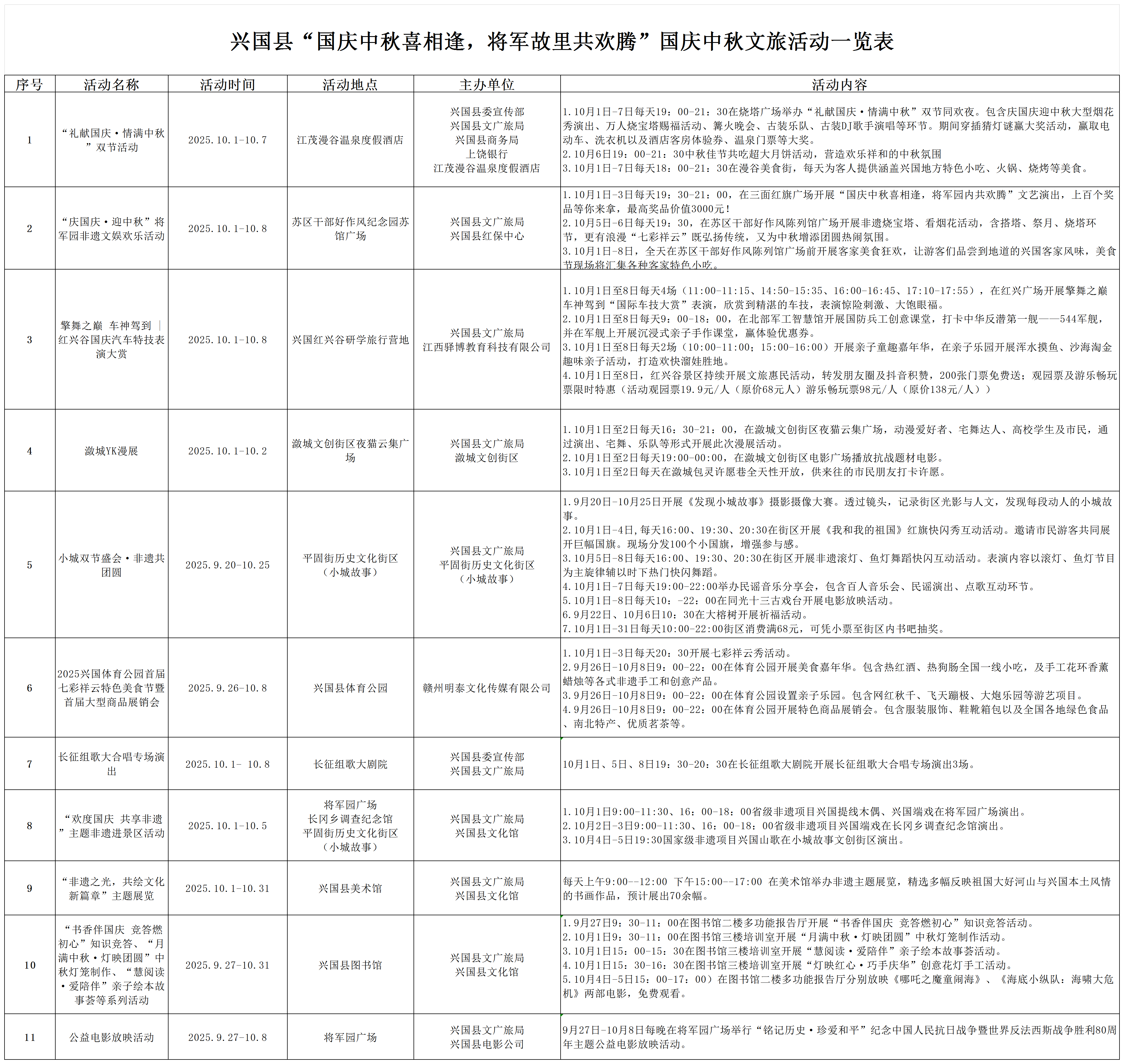 興國縣“國慶中秋喜相逢,將軍故里共歡騰”國慶中秋文旅活動一覽表