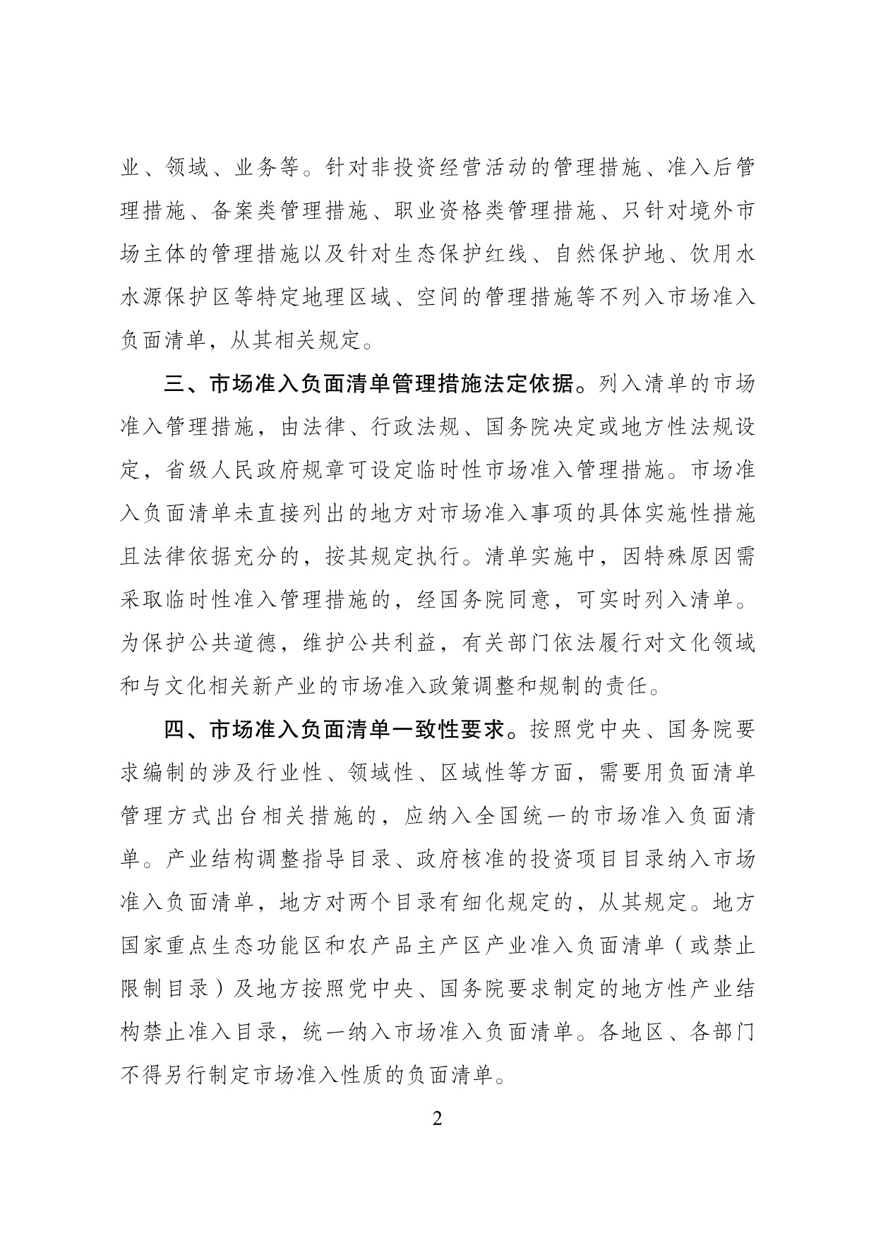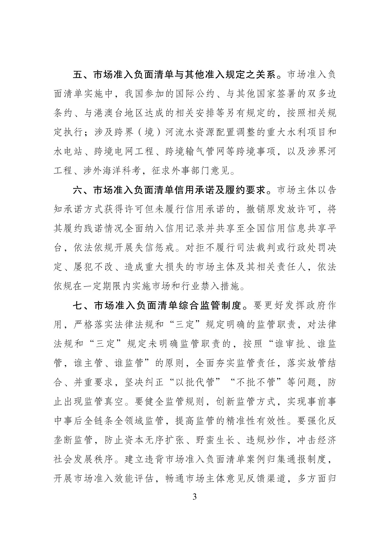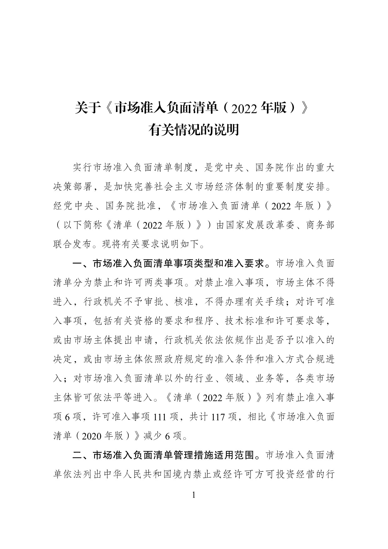 關于《市場準入負面清單說明(2022年版)》有關情況的說明