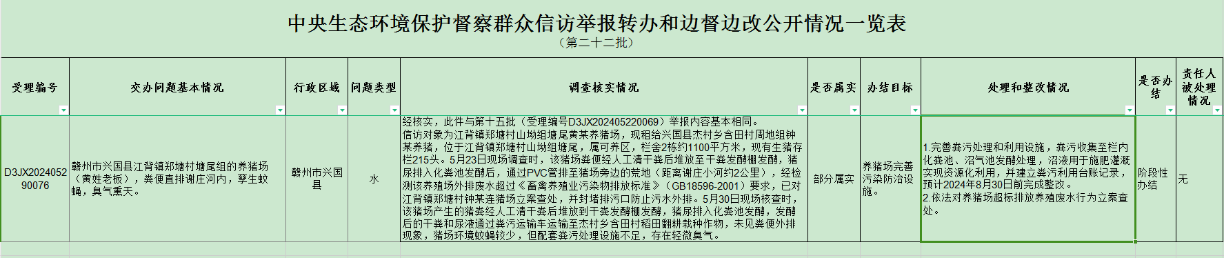 (贛州第二十二批)附件3中央生態環境保護督察群眾信訪舉報轉辦及邊督邊改公開情況一覽表