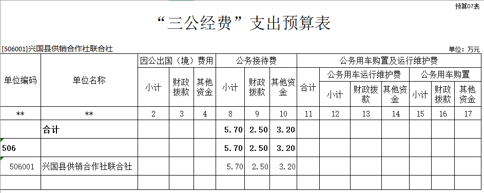 2023年興國縣供銷合作社“三公”經費一般公共預算安排5.70萬元。其中: