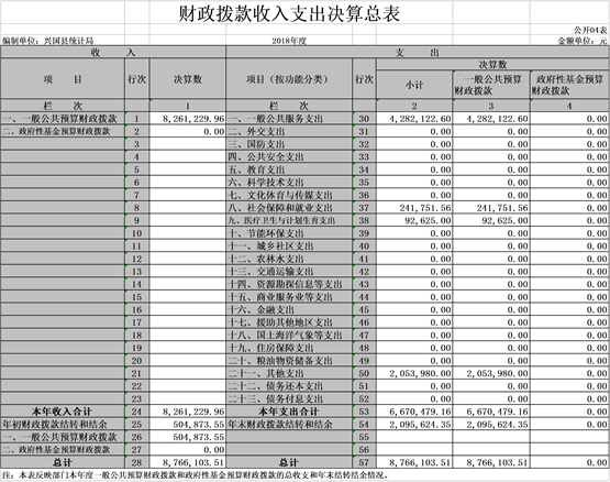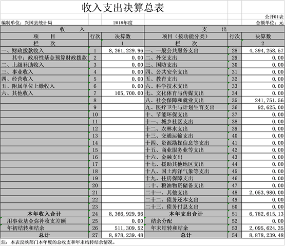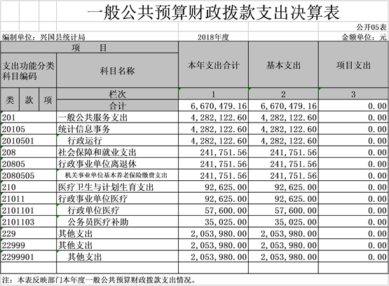 興國縣統(tǒng)計局部門2018年度部門決算