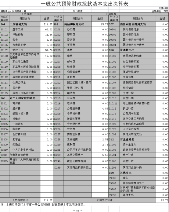 興國(guó)縣統(tǒng)計(jì)局2021年度部門決算