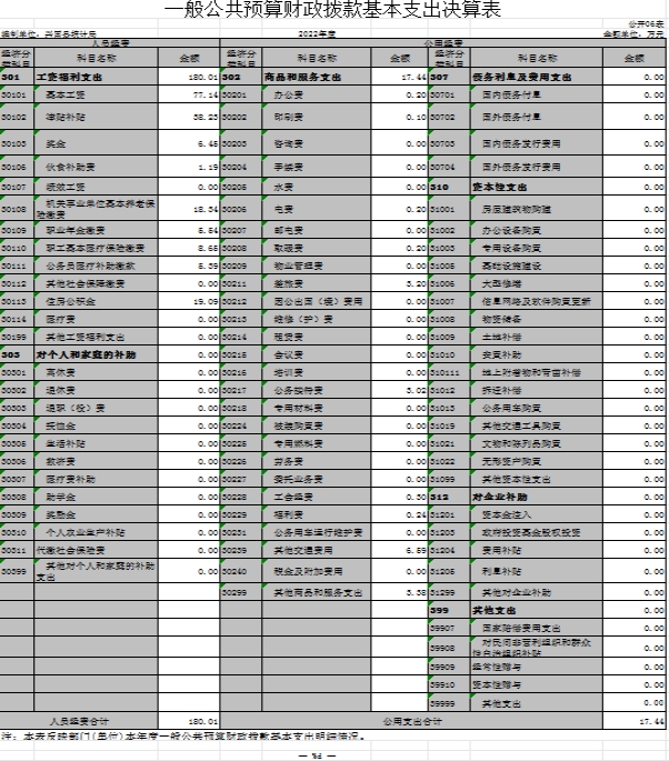 六、一般公共預(yù)算財(cái)政撥款基本支出決算表
