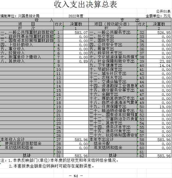 一、收入支出決算總表